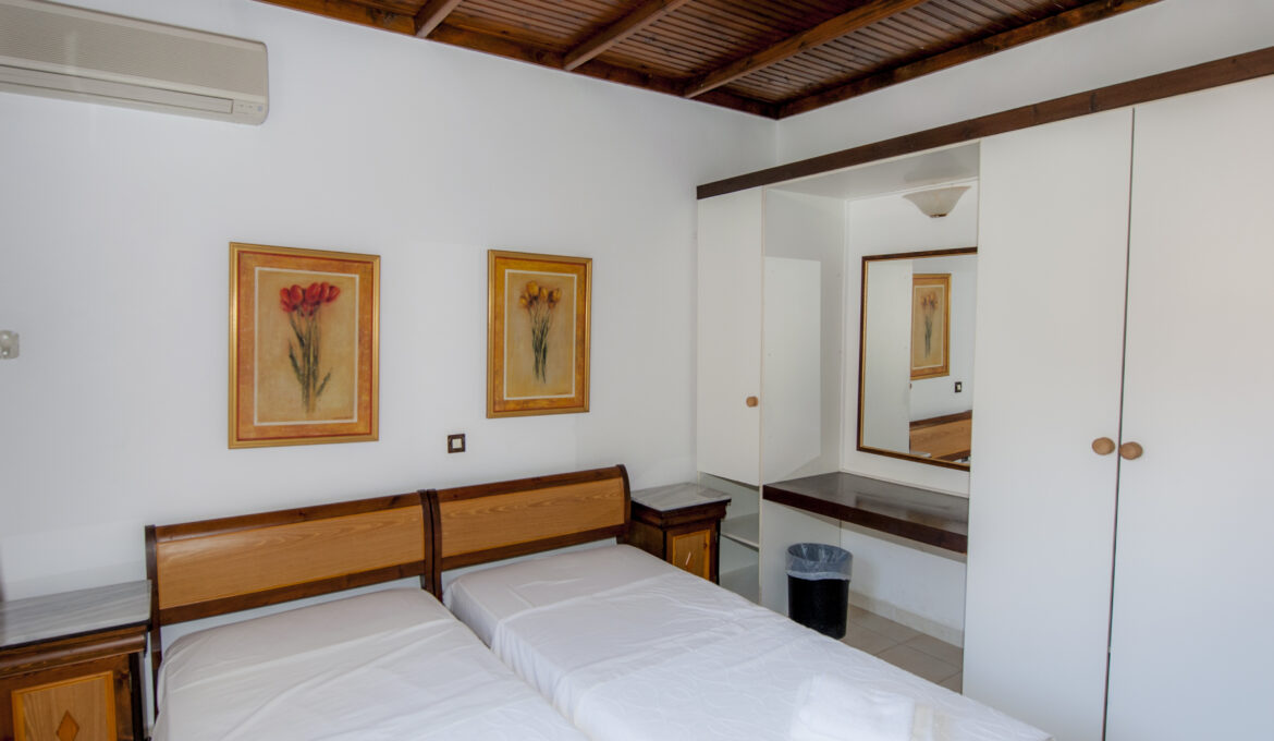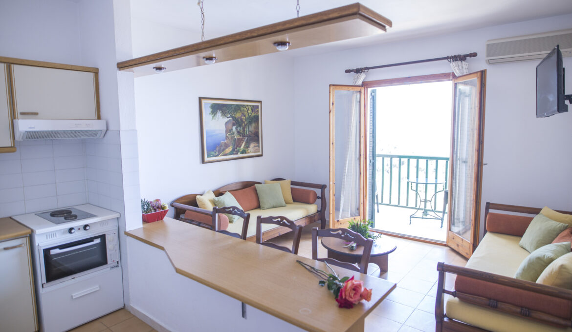 They all have two bedrooms one with a double bed and a second with twin beds, a living room with two sofa beds, a kitchen, a balcony and two private bathrooms. Ideal for families or up to 6 people.